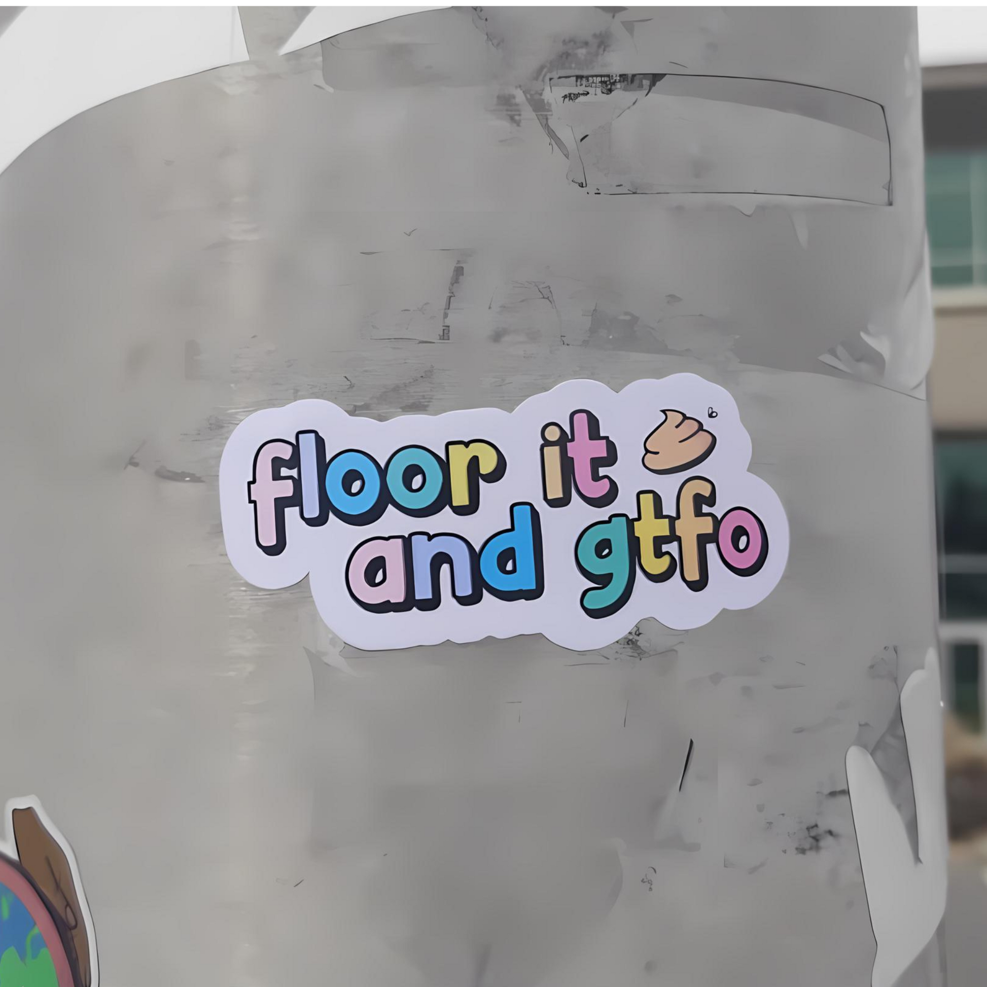 Make your statement loud and clear with the "Floor It and GTFO" sticker—a memento of when a community turned a potential downfall into a celebrated icon.